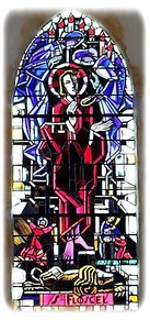 L’origine du nom de la commune. Selon différents récits, la commune de Saint-Floxel devrait son nom à Floscel, jeune soldat de 12 ans, né probablement dans cette paroisse le long de la rivière, appelée à l’époque «Durunna»,la Durance aujourd’hui. Il vivait à Autun et subissait à l’époque la persécution exercée par l'empereur Valérien, contre la religion chrétienne. Sommé de renier sa foi, il refusa et fut flagellé puis Valérien le fit jeter dans un cachot avec un lion. Floscel dit à Dieu : «Viens à mon secours, car tu es puissant». À l'instant même, l'animal tomba mort à ses pieds, il allait ensuite subir le martyr sur un bûcher, quand une pluie torrentielle vint éteindre les flammes. Alors on lui perça les mains et la langue, puis on le dépouilla de ses vêtements pour le couvrir d'une tunique de lin, et on lui trancha la tête sur la place publique en 257. Dans l'église, on peut voir un vitrail à la gloire de Saint Floscel, témoignant de ces récits.