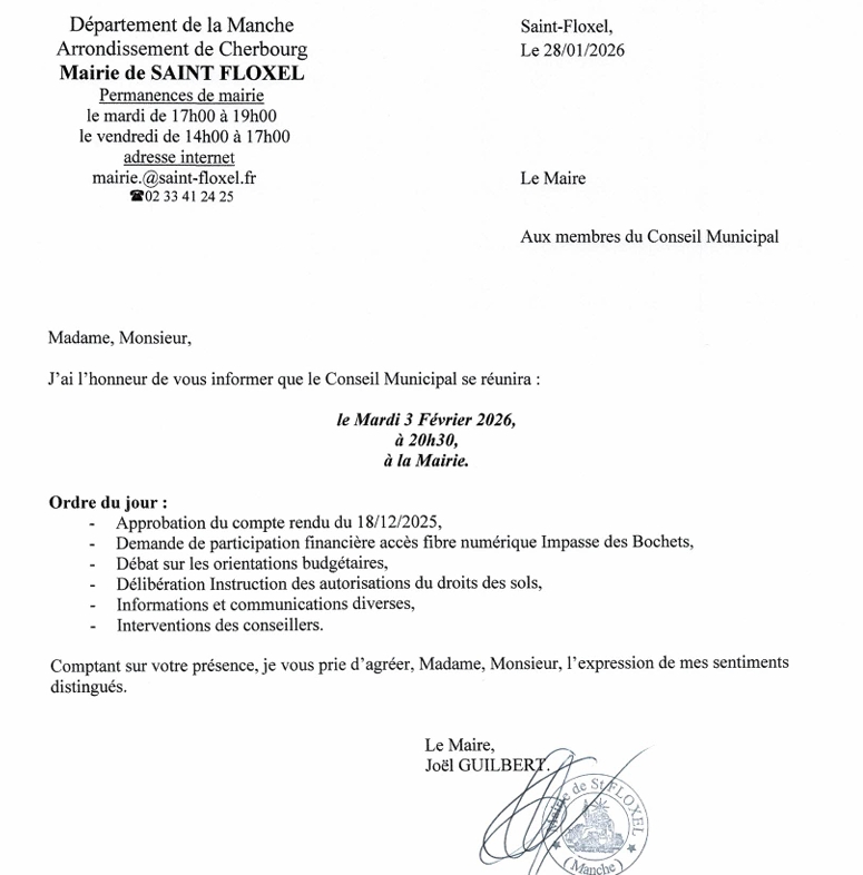 Prochaine réunion de Conseil Municipal le 03 février 2026.