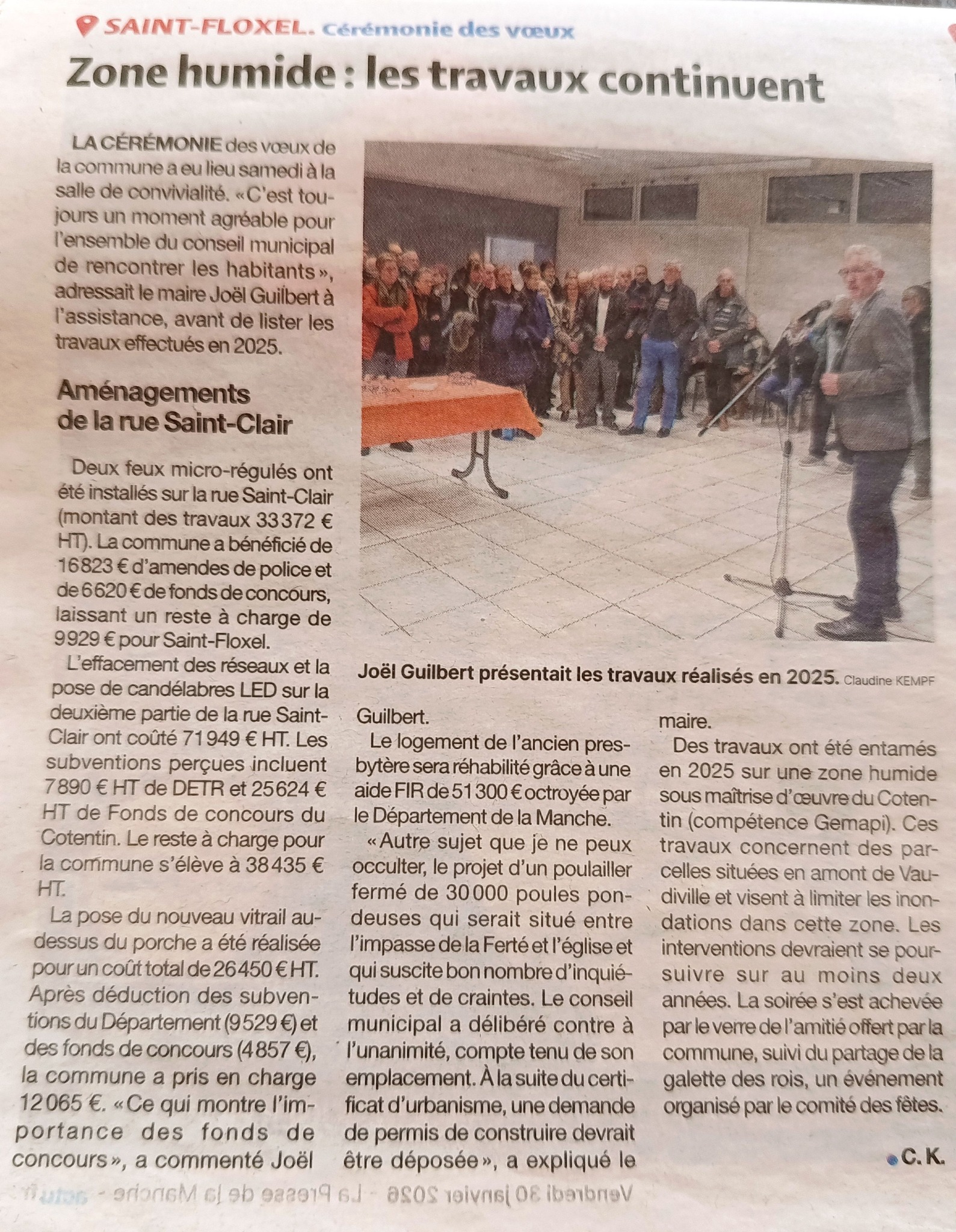Article de presse sur la cérémonie des vœux du samedi 24 janvier 2026.